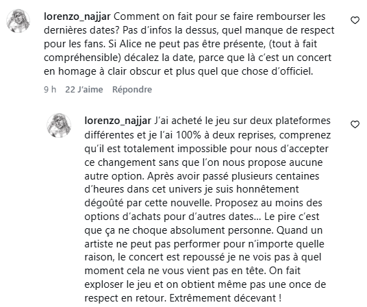 Mais oui en vrai j’aurais été un peu deg aussi même si la remplaçante fera sûrement très bien le taf (d’ailleurs sur toutes les dates Alice a un backup pour pas que les concerts soient annulés si elle ne peut pas chanter)