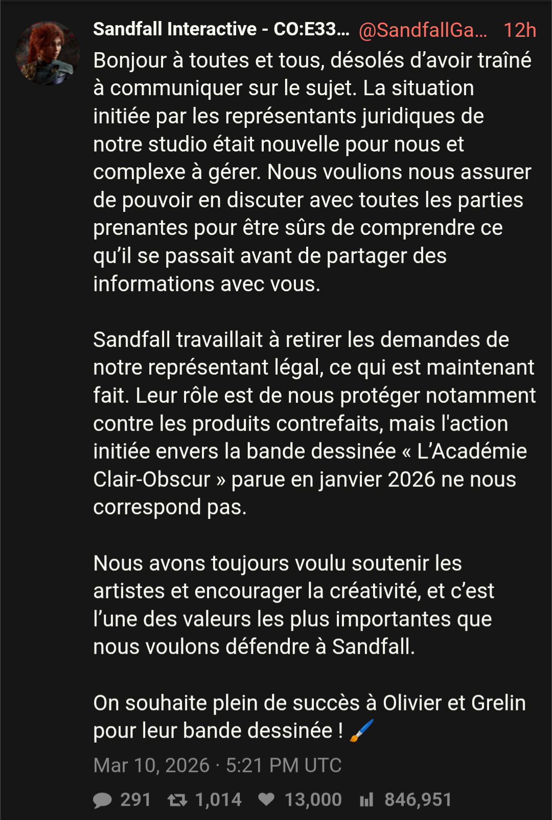 On sent quand même la déclaration faite en sueur après le mini scandale