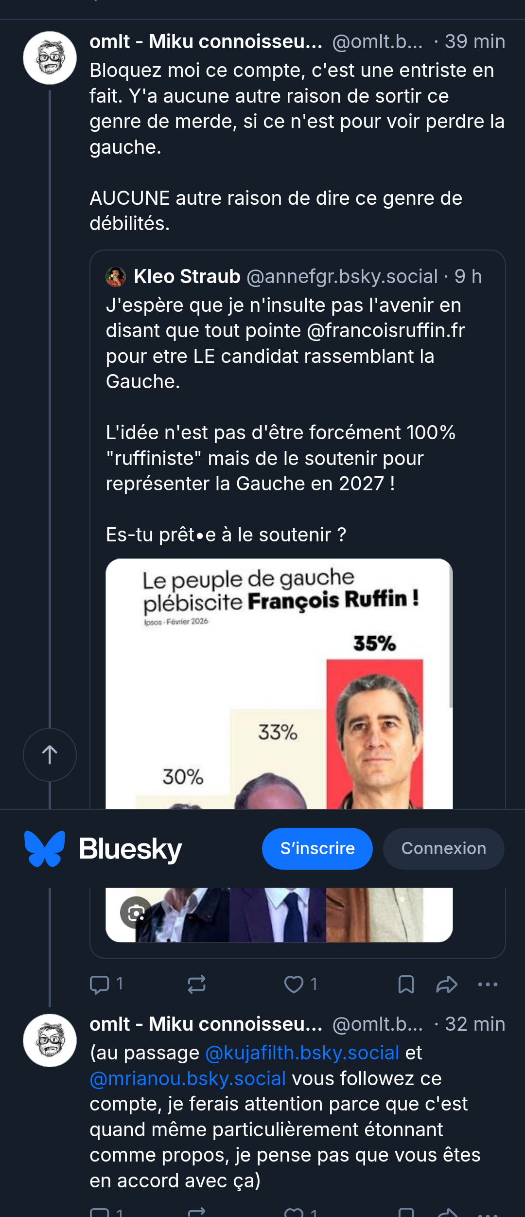 à les entendre Ruffin est un mec de droite raciste (comme tout ce qui est à droite de jonlukrist) car il a voulu prioriser le combat des ouvriers et des prolos de manière intelligente (peut être parfois trop racoleuse) plutôt que de juste dire “whatabout la palestine ?”