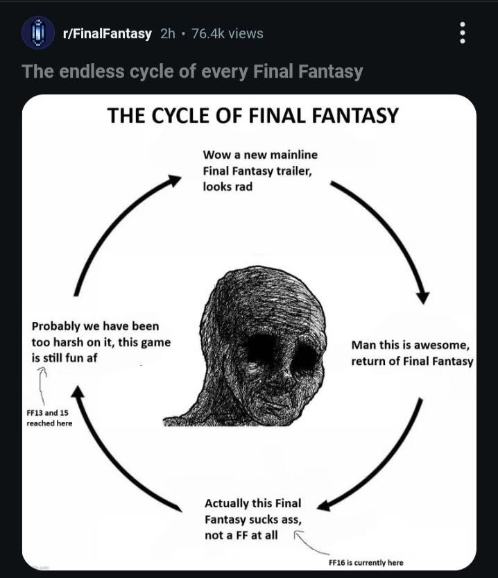 J’ai été le premier à avoir dit que FF15 était pas si mal vu la nullité du 16, je serais présent pour le bûcher si je change d’avis ![]()