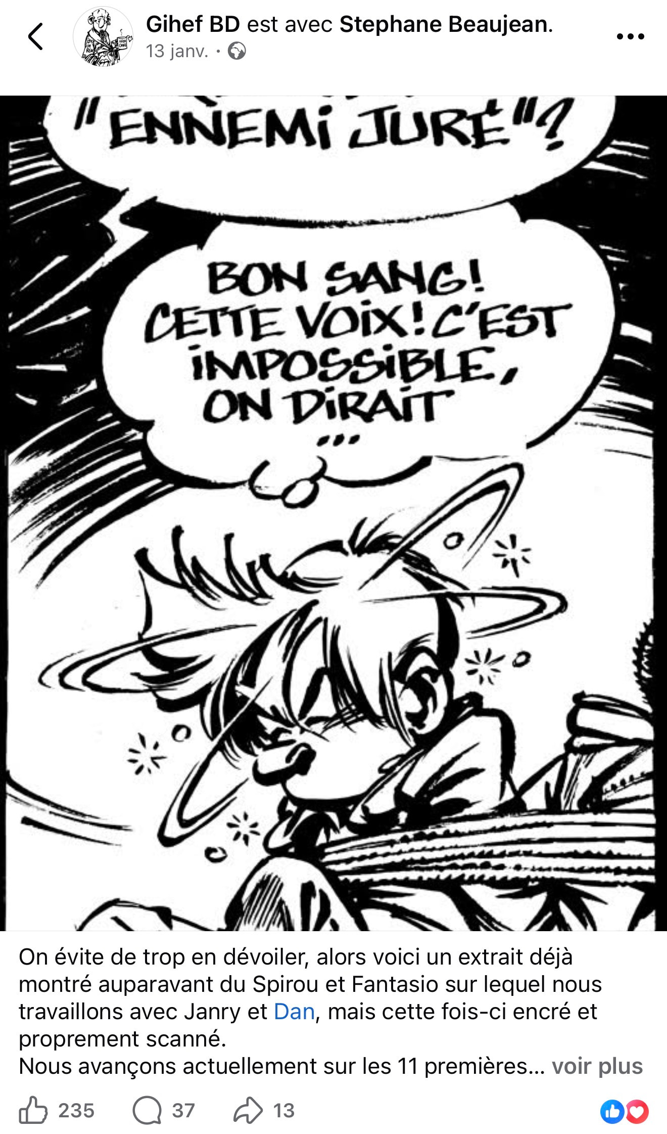 Alors oui, le modĂšle avait ses limites et quand Goscinny voulait pas voir de bites dans son journal, certains sont allĂ©s le faire ailleurs mais il restait tout de mĂȘme plus facile de donner sa chance Ă un jeune parce quâil y avait deux pages Ă remplir pour la semaine prochaine plutĂŽt que de lui faire signer direct un album. Câest pour ca que jâaime bien relire ces vieux mags, on y trouve des trucs un peu originaux, parfois ratĂ©s mais souvent uniques et qui nâĂ©taient pas toujours adaptĂ©s au format album.