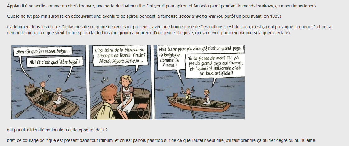 Dans lâanalyse de Spirou pourquoi tu cites pas du tout la reprise dâEmile Bravo ? Câest pourtant trĂšs rĂ©ussi