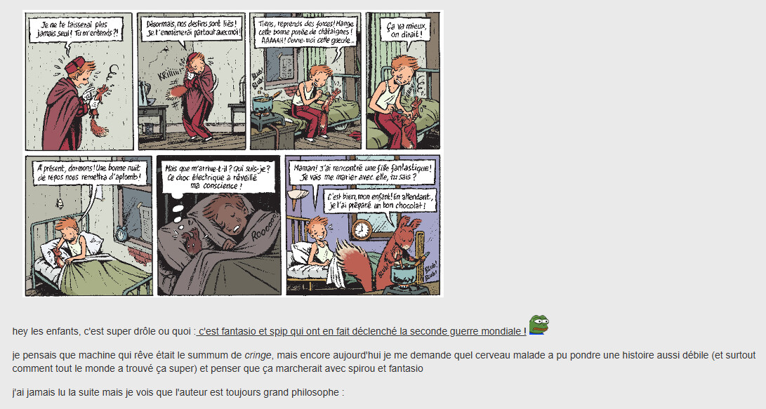 Mais bof, câest une sĂ©rie qui ne mâa jamais vraiment passionnĂ©, je le lisais juste dans Spirou quand il nây avait pas mieux dans le magazine.