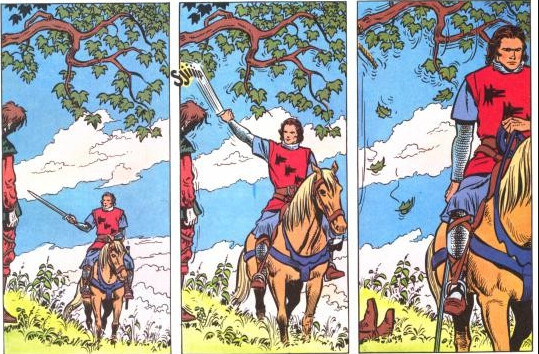 Bon en vrai, jâen ai pas lu des tonnes, mais je me rappelle que câetait une BD au style rĂ©aliste, situĂ©e dans un Moyen Ăge français romancĂ©. Le hĂ©ros avait un profil trĂšs proche des hĂ©ros de shonen nekketsu : courageux, impulsif, loyal, orgueilleux⊠Ardent câetait Seiya Ă la française en fait. Lâunivers avait aussi une dimension mystique assez Ă©trange par moments. Je me rappelle surtout de La Corne de Brume. Certaines pages Ă©taient ultra psychĂ©dĂ©liques. Ăa mâavait pas mal marquĂ©.