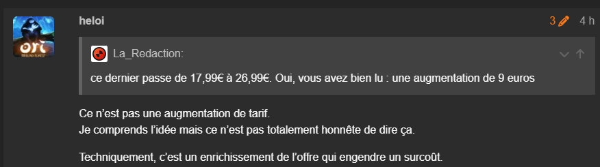 Quâest ce que tu racontes encore, sur le Gamepass PC le prix Ă©tait de 11,99⏠et est passĂ© Ă 14,99⏠: