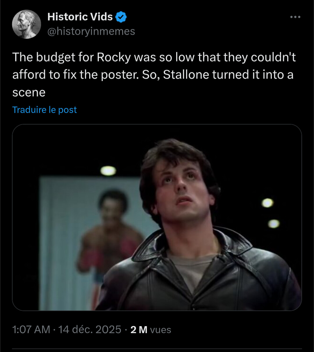 parce quâon oublie parfois Ă quel point les premiers rocky et rambo sont des grands films, et quel acteur mon sylvestre Ă©tait Ă lâĂ©poque