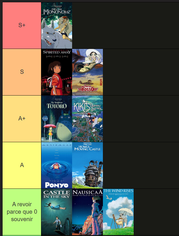 tout le reste c’est masterclass, avec Chihiro et Porco Rosso en tête de liste.