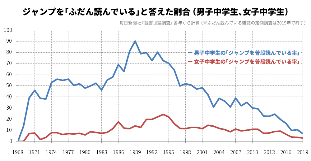 pour boucler avec le topic BD, pourcentage des lycéens qui lisent le jump (bleu homme, rouge femme)