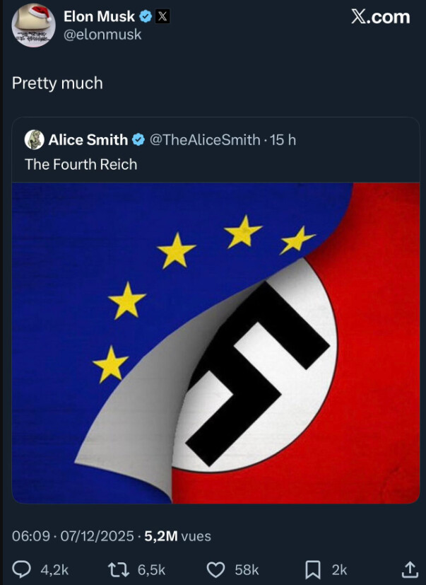 lâUE passe des lois pour contrĂŽler lâinformation ? comme tous les pays je dirais. MĂȘme les champions autoproclamĂ©s de la libertĂ© dâexpression au US, pays qui prends ça au sĂ©rieux pourtant, se dĂ©couvre un goĂ»t pour la censure quand ça les arrangent (câest Ă dire quand ça leurs permet de taper sur leurs adversaires idĂ©ologiques). Et je ne suis pas favorable au principe du contrĂŽle de la parole, mais faut voir dans le dĂ©tail : ça me parait pas abhĂ©rents dâimposer le respect des lois locales Ă des mĂ©dias Ă©trangers.